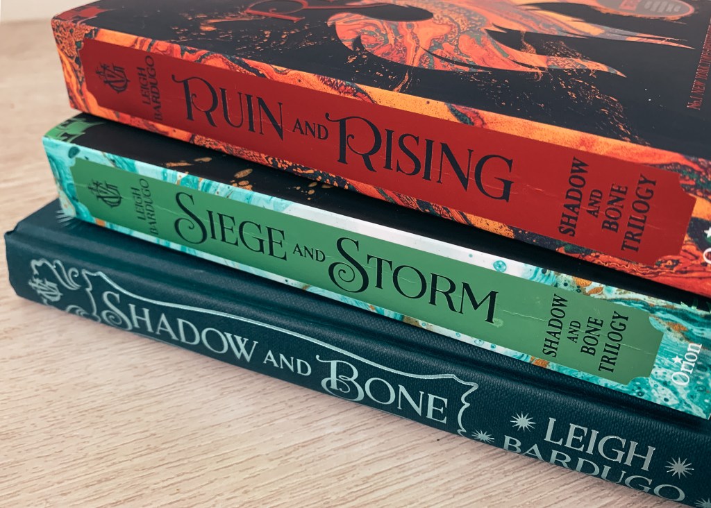Books title: Shadow and Bone (1), Siege and Storm (2), Ruin and Rising (3)
