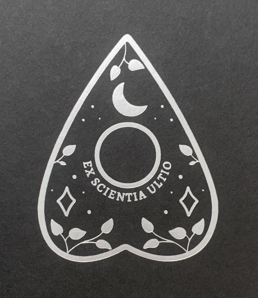 3. The monthly enamel pin is a typewriter with the sentence “Ex Scientia Ultio” designed by Icey Designs and based on this book month.
