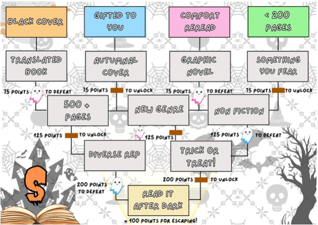 The length of this readathon was of one month, from the 1st of October to the 30th of October and during this time, you need to escape a haunted house.