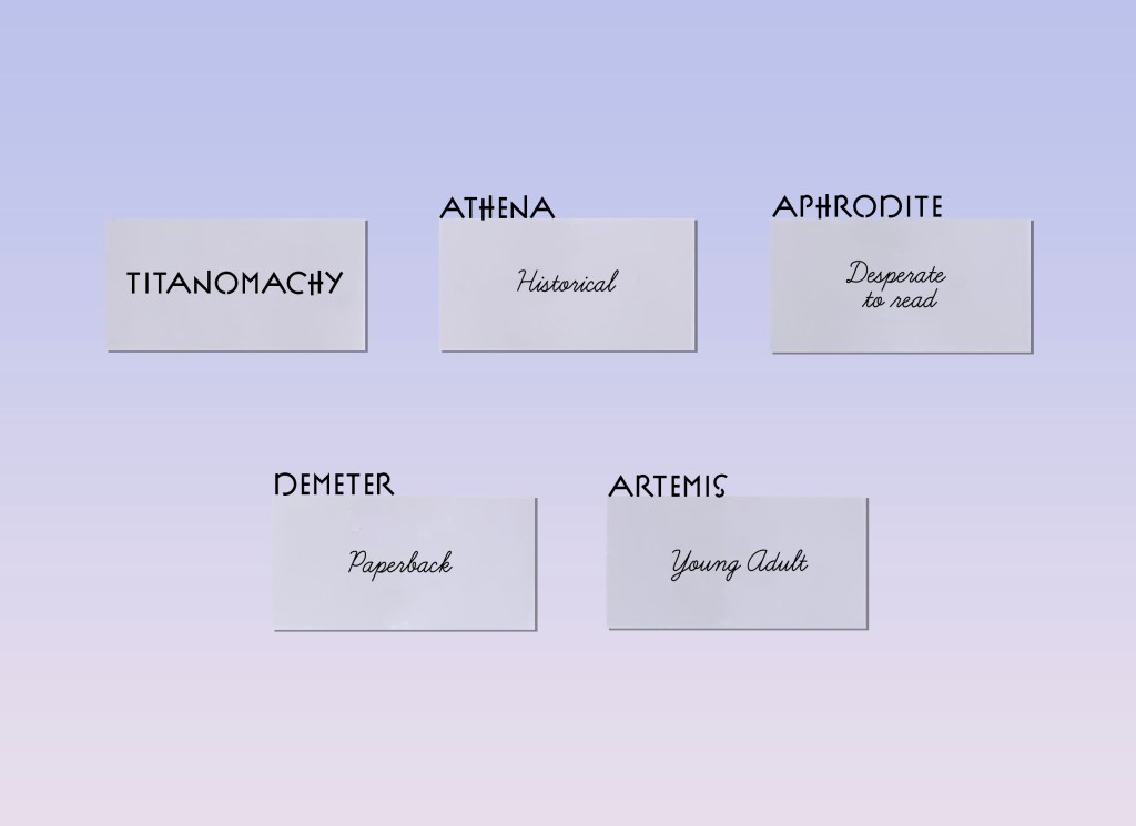 We already have the first two prompts: a small book (less than 300 pages) and gods (a book with a godlike representation.) This time I can easily combine them with Ares by Carly Spade. The book is about the god Ares and is only 289 pages.