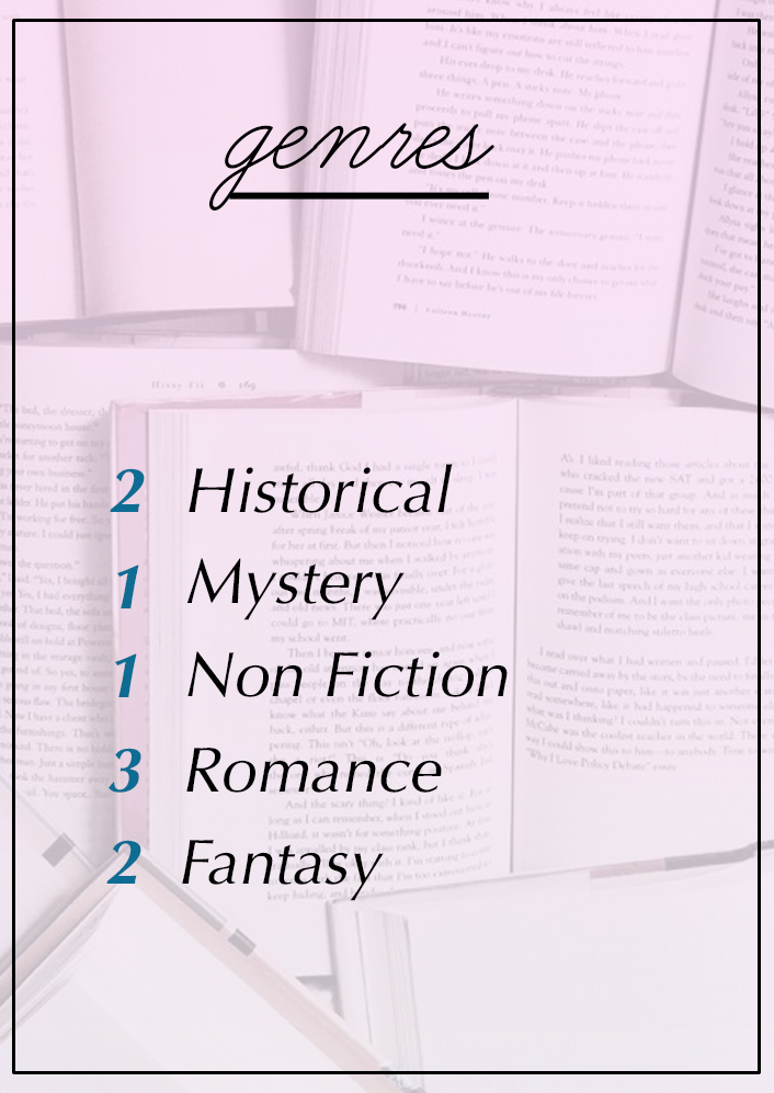 I read nine books which means that I read a total of 2,383 pages, an average of 77 pages per day. I spent 26 days reading for a total of 42h18min. I mixed read a lot and I listened to 18h28 of audiobook. The average rating for this month is 3.64 out of 5.